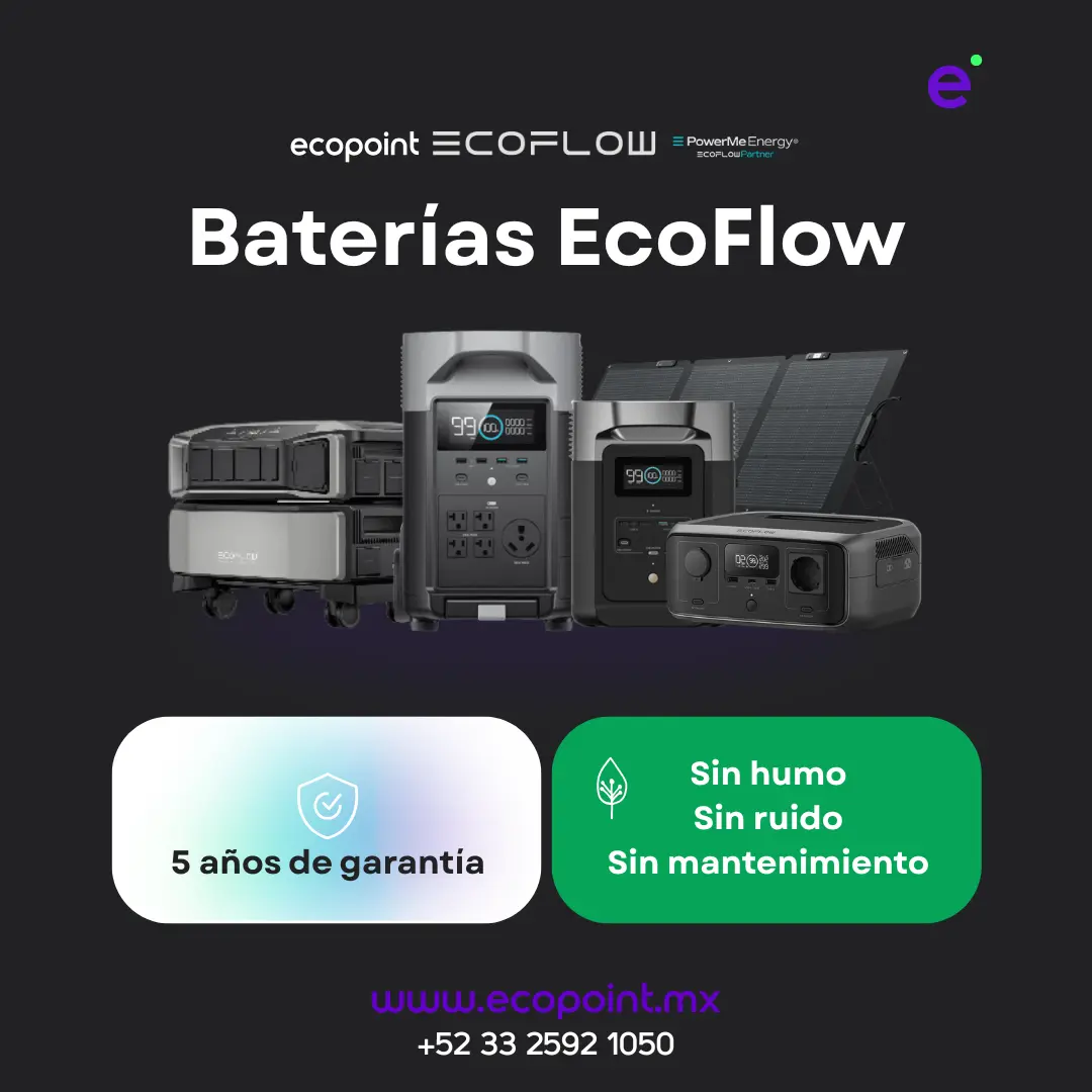 Solicita tu cotización personalizada y conoce la gama de baterías EcoFlow disponibles en Ecopoint. Nuestro equipo te asesora para elegir la solución perfecta para tu hogar, negocio o proyecto, garantizando respaldo, eficiencia y la mejor tecnología en energía portátil.